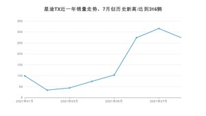 2021年8月,星途TX销量为274辆,同比增长32.37%,环比下降13.29%。1-8月份,星途TX销量为1218辆,同比增长4.91%。在最近1年中,星途TX销量在2021年07月达到最高,销量为316辆。