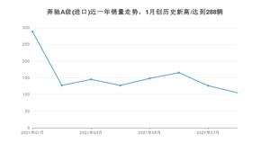 2021年8月,奔驰A级(进口)销量为105辆,同比下降53.95%,环比下降16.67%。1-8月份,奔驰A级(进口)销量为1231辆,同比下降58.5%。在最近1年中,奔驰A级(进口)销量在2021年01月达到最高,销量为288辆。