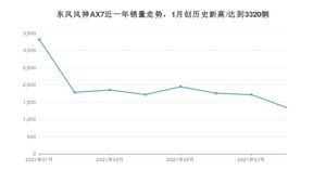 2021年8月,东风风神AX7销量为1342辆,同比下降8.52%,环比下降21.89%。1-8月份,东风风神AX7销量为15448辆,同比增长20.22%。在最近1年中,东风风神AX7销量在2021年01月达到最高,销量为3320辆。