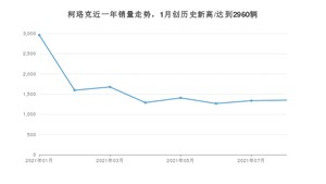 2021年8月,柯珞克销量为1350辆,同比下降43.21%,环比增长0.97%。1-8月份,柯珞克销量为12880辆,同比下降7.54%。在最近1年中,柯珞克销量在2021年01月达到最高,销量为2960辆。