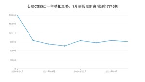 2021年8月,长安CS55销量为9090辆,同比下降10%,环比下降4.53%。1-8月份,长安CS55销量为80065辆,同比增长35.2%。在最近1年中,长安CS55销量在2021年01月达到最高,销量为17745辆。