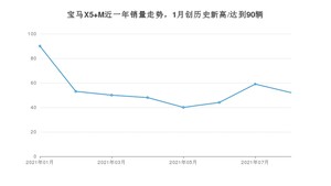 2021年8月,宝马X5 M销量为52辆,同比增长147.62%,环比下降11.86%。1-8月份,宝马X5 M销量为436辆,同比增长550.75%。在最近1年中,宝马X5 M销量在2021年01月达到最高,销量为90辆。