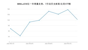2021年8月,MINI JCW销量为123辆,同比增长232.43%,环比下降30.51%。1-8月份,MINI JCW销量为955辆,同比增长176.81%。在最近1年中,MINI JCW销量在2021年07月达到最高,销量为177辆。