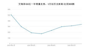 2021年8月,艾瑞泽GX销量为339辆,同比下降73.62%,环比增长7.96%。1-8月份,艾瑞泽GX销量为2354辆,同比下降76.83%。在最近1年中,艾瑞泽GX销量在2021年01月达到最高,销量为505辆。
