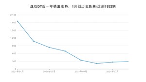 2021年8月,逸动DT销量为285辆,同比下降80.6%,环比增长6.74%。1-8月份,逸动DT销量为5571辆,同比下降58.6%。在最近1年中,逸动DT销量在2021年01月达到最高,销量为1852辆。
