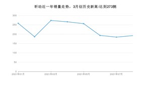 2021年8月,昕动销量为192辆,同比下降45.76%,环比增长4.35%。1-8月份,昕动销量为1808辆,同比下降34.63%。在最近1年中,昕动销量在2021年03月达到最高,销量为273辆。