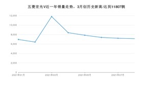2021年8月,五菱宏光V销量为7133辆,同比下降18.54%,环比下降1.11%。1-8月份,五菱宏光V销量为63144辆,同比下降2.86%。在最近1年中,五菱宏光V销量在2021年03月达到最高,销量为11807辆。