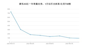 2021年8月,嘉悦A5销量为92辆,同比下降95.95%,环比下降8%。1-8月份,嘉悦A5销量为1852辆,同比下降90.95%。在最近1年中,嘉悦A5销量在2021年01月达到最高,销量为732辆。