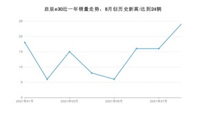 2021年8月,启辰e30销量为24辆,同比增长9.09%,环比增长50%。1-8月份,启辰e30销量为109辆,同比下降56.22%。在最近1年中,启辰e30销量在2021年08月达到最高,销量为24辆。