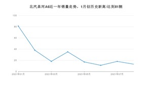 2021年8月,北汽昌河A6销量为13辆,同比下降89.43%,环比下降27.78%。1-8月份,北汽昌河A6销量为231辆,同比下降84.5%。在最近1年中,北汽昌河A6销量在2021年01月达到最高,销量为81辆。
