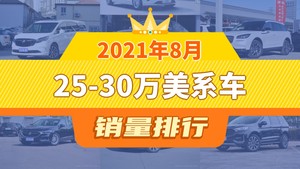 2021年8月的乘用车销量数据已经出炉,据众车网汽车行业数据监测显示,8月国内乘用车市场销量达到157.17万辆,同比下降9.28%,环比下降4.85%。每月各个细分市场的销量排行榜也成为了大家所关注的话题,今天众车网为大家带来了2021年8月25-30万美系车的销量排行榜单,有哪些车型能跻身销量榜呢?下面我们直接看数据。