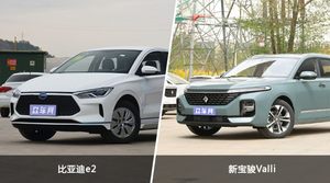 还是以两个车系中主销车型来进行对比,分别是2021款 比亚迪e2 豪华型(以下简称比亚迪e2)及2021款 新宝骏Valli 1.5T 那曲繁星 CVT旗舰型(以下简称新宝骏Valli)。