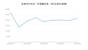2021年9月,济南市汽车总销量为21799辆,同比下降5.55%,环比增长11.46%。1-9月份,济南市总销量为181110辆,同比增长23.31%。在最近1年中,济南市销量在2021年01月达到最高,销量为26456辆。
