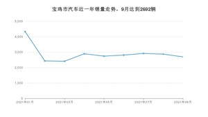 2021年9月,宝鸡市汽车总销量为2692辆,同比下降29.73%,环比下降6.2%。1-9月份,宝鸡市总销量为26090辆,同比增长11.53%。在最近1年中,宝鸡市销量在2021年01月达到最高,销量为4332辆。