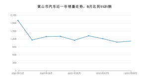 2021年9月,黄山市汽车总销量为1121辆,同比下降22.04%,环比增长3.6%。1-9月份,黄山市总销量为11546辆,同比增长8.29%。在最近1年中,黄山市销量在2021年01月达到最高,销量为1903辆。