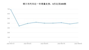 2021年9月,铜川市汽车总销量为409辆,同比下降8.71%,环比增长6.51%。1-9月份,铜川市总销量为3853辆,同比增长8.17%。在最近1年中,铜川市销量在2021年01月达到最高,销量为689辆。