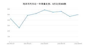 2021年9月,鸡西市汽车总销量为502辆,同比下降11.62%,环比增长7.96%。1-9月份,鸡西市总销量为4339辆,同比增长15.49%。在最近1年中,鸡西市销量在2021年05月达到最高,销量为586辆。