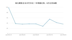 2021年9月,海北藏族自治州汽车总销量为36辆,同比下降34.55%,环比下降14.29%。1-9月份,海北藏族自治州总销量为407辆,同比增长6.27%。在最近1年中,海北藏族自治州销量在2021年01月达到最高,销量为98辆。