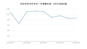 2021年9月,克拉玛依市汽车总销量为861辆,同比下降4.23%,环比增长1.41%。1-9月份,克拉玛依市总销量为8600辆,同比增长49.44%。在最近1年中,克拉玛依市销量在2021年04月达到最高,销量为1123辆。
