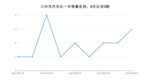 2021年9月,三沙市汽车总销量为3辆,同比增长200%,环比增长50%。1-9月份,三沙市总销量为17辆,同比增长750%。在最近1年中,三沙市销量在2021年03月达到最高,销量为4辆。