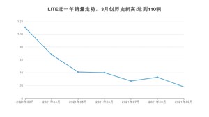 在国内市场上,LITE在2021年9月的销量为18辆,同比增长157.14%,环比下降45.45%。1-9月份,LITE累计销量为337辆,较去年同期下降24.27%。