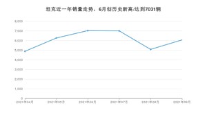 在国内市场上,坦克在2021年9月的销量为6069辆,环比增长19.4%。1-9月份,坦克累计销量为36335辆