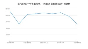 2021年9月,宝马X3销量为7890辆,同比下降46.49%,环比下降31.57%。1-9月份,宝马X3销量为105225辆,同比增长5.75%。在最近1年中,宝马X3销量在2021年01月达到最高,销量为13534辆。