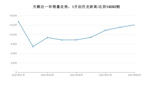 2021年9月,天籁销量为15065辆,同比增长22.18%,环比增长5.31%。1-9月份,天籁销量为109714辆,同比增长39.76%。在最近1年中,天籁销量在2021年01月达到最高,销量为16082辆。