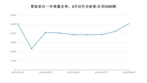 2021年9月,冒险家销量为5085辆,同比增长19.14%,环比增长20.81%。1-9月份,冒险家销量为36322辆,同比增长92.02%。在最近1年中,冒险家销量在2021年09月达到最高,销量为5085辆。