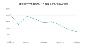 2021年9月,途锐销量为744辆,同比下降48.62%,环比下降16.87%。1-9月份,途锐销量为12774辆,同比增长1.52%。在最近1年中,途锐销量在2021年01月达到最高,销量为2032辆。