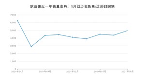 2021年9月,欧蓝德销量为4965辆,同比下降5.07%,环比增长13.3%。1-9月份,欧蓝德销量为39805辆,同比增长5.17%。在最近1年中,欧蓝德销量在2021年01月达到最高,销量为6250辆。