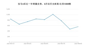 2021年9月,宝马4系销量为562辆,同比增长58.31%,环比增长19.32%。1-9月份,宝马4系销量为6702辆,同比增长91.16%。在最近1年中,宝马4系销量在2021年06月达到最高,销量为1008辆。