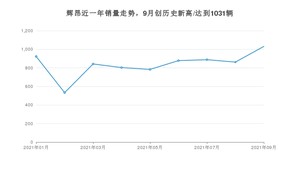 2021年9月,辉昂销量为1031辆,同比增长11.1%,环比增长19.61%。1-9月份,辉昂销量为7543辆,同比增长24.64%。在最近1年中,辉昂销量在2021年09月达到最高,销量为1031辆。