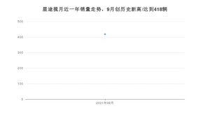 2021年9月,星途揽月销量为418辆,1-9月份,星途揽月销量为418辆,同比增长41%。在最近1年中,星途揽月销量在2021年09月达到最高,销量为418辆。