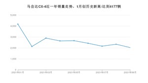 2021年9月,马自达CX-4销量为2031辆,同比下降41.03%,环比下降13.13%。1-9月份,马自达CX-4销量为23459辆,同比下降33.53%。在最近1年中,马自达CX-4销量在2021年01月达到最高,销量为4177辆。