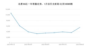 2021年9月,远景X6销量为5571辆,同比下降27.37%,环比增长51.63%。1-9月份,远景X6销量为44261辆,同比下降23.31%。在最近1年中,远景X6销量在2021年01月达到最高,销量为10585辆。