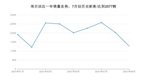 2021年9月,埃尔法销量为1262辆,同比下降37.77%,环比下降37.68%。1-9月份,埃尔法销量为18307辆,同比增长9.36%。在最近1年中,埃尔法销量在2021年07月达到最高,销量为2577辆。