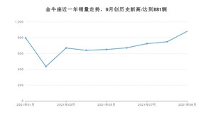 2021年9月,金牛座销量为881辆,同比下降0.23%,环比增长17.78%。1-9月份,金牛座销量为6214辆,同比增长20.82%。在最近1年中,金牛座销量在2021年09月达到最高,销量为881辆。