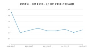 2021年9月,索纳塔销量为758辆,同比下降71.09%,环比增长21.28%。1-9月份,索纳塔销量为7431辆,同比下降5.01%。在最近1年中,索纳塔销量在2021年01月达到最高,销量为1658辆。