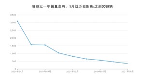 2021年9月,瑞纳销量为348辆,同比下降90.83%,环比下降23.85%。1-9月份,瑞纳销量为10088辆,同比下降60.76%。在最近1年中,瑞纳销量在2021年01月达到最高,销量为3089辆。