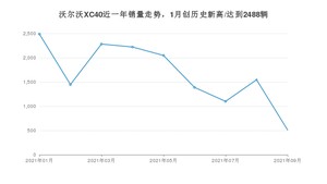 2021年9月,沃尔沃XC40销量为510辆,同比下降77.45%,环比下降66.99%。1-9月份,沃尔沃XC40销量为15027辆,同比下降7.13%。在最近1年中,沃尔沃XC40销量在2021年01月达到最高,销量为2488辆。
