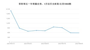 2021年9月,菲斯塔销量为583辆,同比下降79.13%,环比下降0.85%。1-9月份,菲斯塔销量为8070辆,同比下降76.02%。在最近1年中,菲斯塔销量在2021年01月达到最高,销量为1992辆。