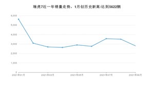 2021年9月,瑞虎7销量为2803辆,同比下降23.64%,环比下降20.1%。1-9月份,瑞虎7销量为29551辆,同比增长50.58%。在最近1年中,瑞虎7销量在2021年01月达到最高,销量为5622辆。