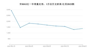 2021年9月,宋MAX销量为1377辆,同比下降40.42%,环比增长6.74%。1-9月份,宋MAX销量为15482辆,同比下降15.57%。在最近1年中,宋MAX销量在2021年01月达到最高,销量为2923辆。