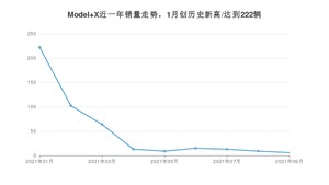 2021年9月,Model X销量为6辆,同比下降99.7%,环比下降33.33%。1-9月份,Model X销量为453辆,同比下降88.92%。在最近1年中,Model X销量在2021年01月达到最高,销量为222辆。