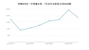 2021年9月,奔腾B70销量为1846辆,1-9月份,奔腾B70销量为12535辆,在最近1年中,奔腾B70销量在2021年07月达到最高,销量为2435辆。
