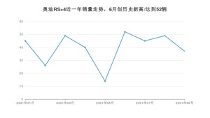 2021年9月,奥迪RS 4销量为37辆,同比增长1%,环比下降24.49%。1-9月份,奥迪RS 4销量为357辆,同比增长325%。在最近1年中,奥迪RS 4销量在2021年06月达到最高,销量为52辆。