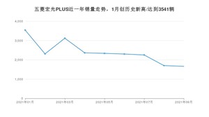 2021年9月,五菱宏光PLUS销量为1662辆,同比下降45.42%,环比下降2.29%。1-9月份,五菱宏光PLUS销量为21588辆,同比下降18.93%。在最近1年中,五菱宏光PLUS销量在2021年01月达到最高,销量为3541辆。