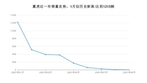 2021年9月,翼虎销量为1辆,同比下降99.86%,环比下降75%。1-9月份,翼虎销量为2759辆,同比下降51.69%。在最近1年中,翼虎销量在2021年01月达到最高,销量为1215辆。