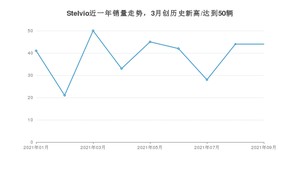 2021年9月,Stelvio销量为44辆,同比下降6.38%,环比持平。1-9月份,Stelvio销量为348辆,同比下降14.71%。在最近1年中,Stelvio销量在2021年03月达到最高,销量为50辆。